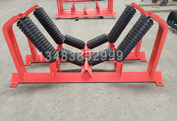 帶式輸送機(jī)緩沖托輥組安裝在輸送機(jī)受料段的下方,減小落料時(shí)物料對輸送帶的沖擊,以延長輸送帶的使用壽命。
